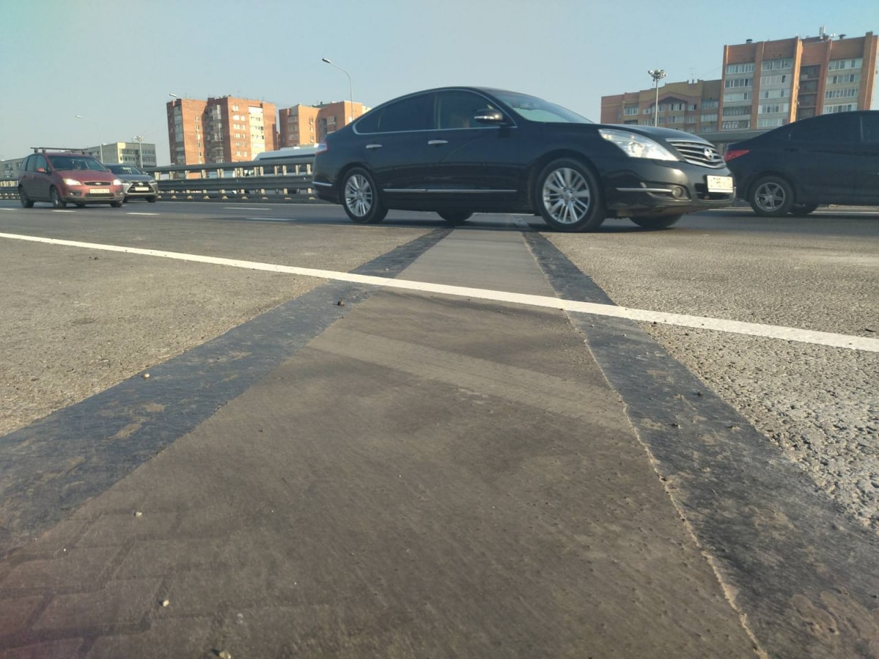 «Полимербетон изготавливался непосредственно на объекте из трёх компонентов. После застывания получается материал очень схожий с искусственным камнем. Срок службы у него больше, чем у асфальтобетона. Он надёжно защищает конструкцию деформационного шва и повышает комфорт проезда моста», – рассказал руководитель подрядной организации, выполнявшей ремонт путепровода, Евгений Проскуряков.