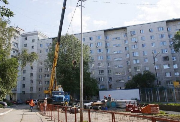 Первым стала придомовая территория по ул. Свердлова, 18, 20 и 22. В этом строительном сезоне двор будет благоустраиваться, а сейчас «УСТЭК» проводит замену сетей теплоснабжения. Подрядная организация проводит земляные работы, демонтаж старого трубопровода, осуществляет подготовку конструкций неподвижных опор, монтаж трубопроводов. Часть двора огорожена, чтобы пешеходы могли безопасно передвигаться по пешеходным дорожкам и проездам. Деревья защищены деревянными щитами.