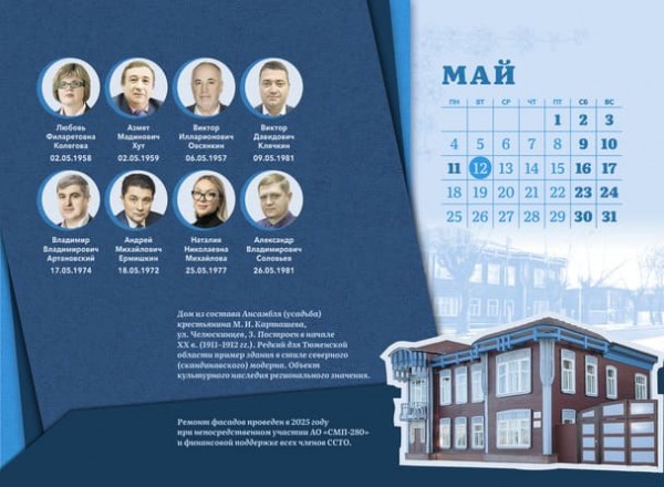 Традиционно на страницах календаря размещены фото новых объектов, в частности – введенных в эксплуатацию в 2024-2025 гг., отмечены компании, которые справляют свои юбилеи в 2026 году, включая наши вузы. Но главной темой при подготовке дизайн-макета стал главный юбилей наступающего года – 440-летие Тюмени.