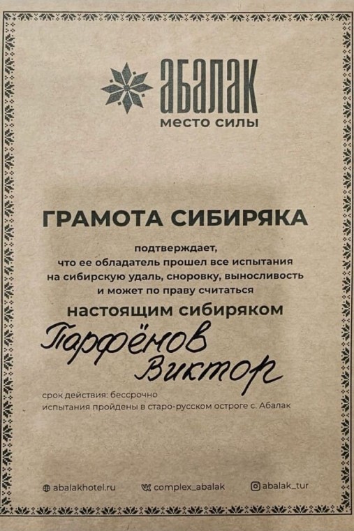 На пути в Тобольск; В парке-отеле «Абалак»; Грамота сибиряка, 18.01.2026