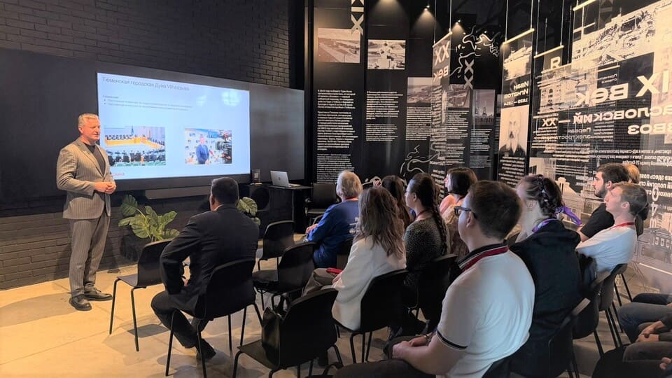 Депутат Тюменской городской Думы, директор филиала компании «Брусника» в Тюмени Виктор Корчагин провел встречу со студентами строительных специальностей и преподавателями из разных городов России, прибывшими в Тюмень на III тур всероссийской олимпиады по направлению «Строительство».