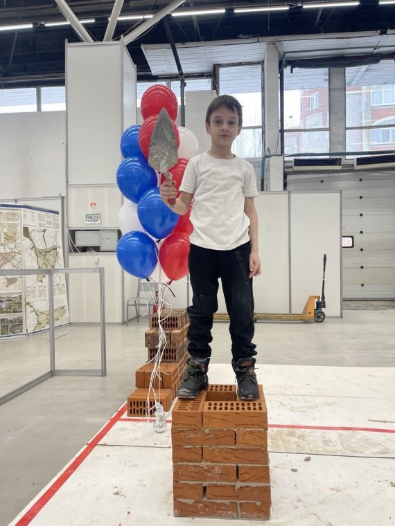 Пока участники выполняли задание, на свободной площадке для девятилетнего Елисея эксперты провели небольшой мастер-класс. Мальчик с интересом слушал наставника, старательно распределял смесь по ряду, расставлял кирпичи и аккуратно снимал излишки смеси с фасада кладки.
