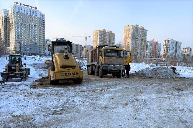 Сейчас строители готовят площадку под свайное поле. На первом этапе предстоит привезти и разровнять более 12 000 тонн песка.